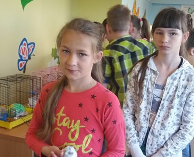 4.klases skolēni Dzīvās dabas stūrītī.