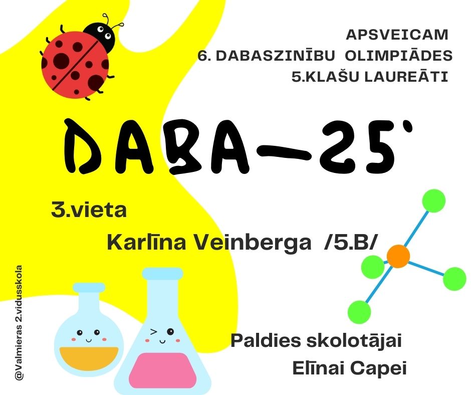Valmieras 2. vidusskolas Erasmus+ KA1 projektu  “Learning and Teaching STEM Thinking Skills”finansējuma līgums Nr. 2023-1-LV01-KA122-SCH-000149605 , līdzfinansē Eiropas Savienības Erasmus+ programma un administrē Valsts izglītības attīstības aģentūra. Plašāku informāciju par Erasmus+ programmu var saņemt Valsts izglītības attīstības aģentūras mājas lapā: http://www.viaa.gov.lv.